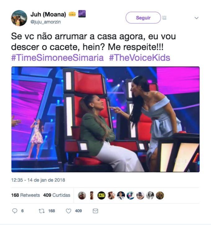 Simone e Simaria estão bombando na internet como juradas do The Voices e divertindo o público. A dupla ficou em um dos assuntos mais comentados do Twitter após protagonizar uma suposta ‘briga’ durante o programa exibido neste domingo(14).