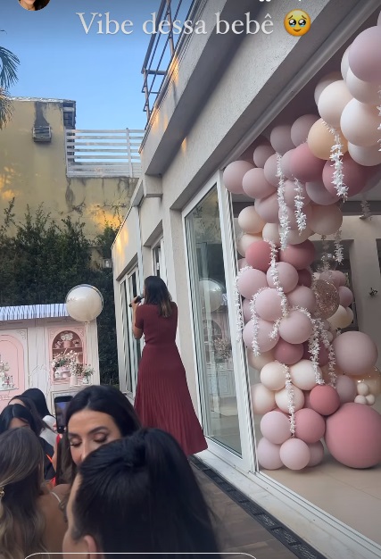 Bruna mostrou que fez uma caminhada matinal enquanto as amigas organizavam a decoração, e só poderia entrar no local quando estivesse tudo pronto, já que era uma decoração surpresa.