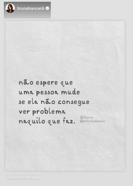 “Não espere que uma pessoa mude se ela não consegue ver problema naquilo que faz.”, diz o post compartilhado por ela no Instagram.