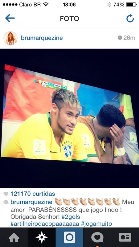 Início Famosos & TV Bruna Marquezine comemora gols do namorado