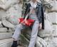 Chegando ao desfile da marca, a atriz foi fotografada usando um look todo cinza e preto, com top transparente e sem sutiã, calça alfaiataria, além de uma bolsa e botas diferentonas.