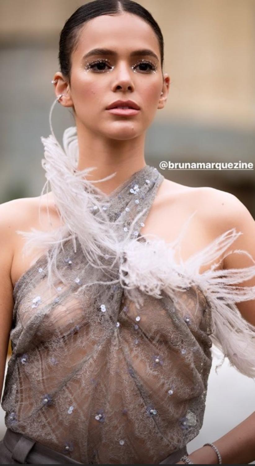 ASSUNTOS: blusa transparente bruna marquezine, Bruna Marquezine, bruna marquezine desfile, bruna marquezine look transparente, bruna marquezine paris, semana de moda paris, Famosos & TV