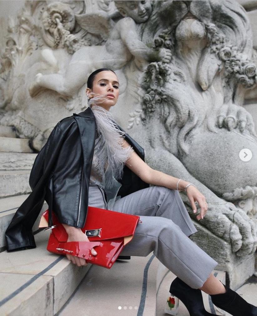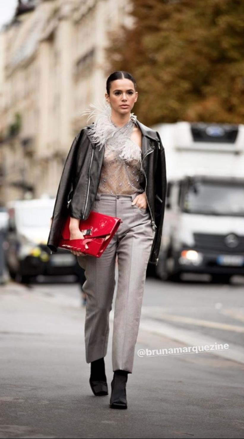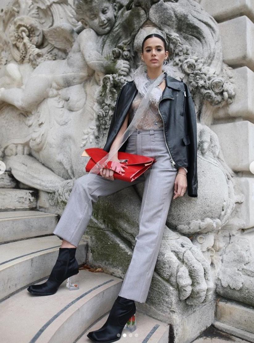 Depois de passar por Milão, na Itália, Bruna Marquezine está marcando presença na Semana de Moda de Paris, na França, e por lá apostou em um look ousado, com transparência, da grife Maison Margiela.