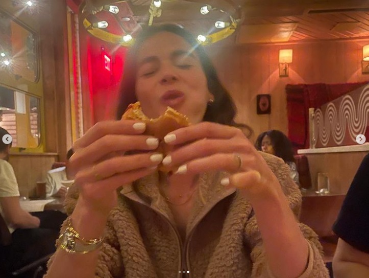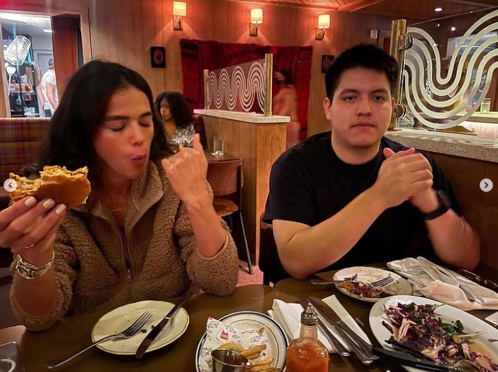O rapaz conhecido por interpretar Miguel Diaz na série Cobra Kai publicou uma foto da brasileira comendo um sanduíche e escreveu: "'Você roubou meu sanduíche de lagosta' Uma trilogia'”.