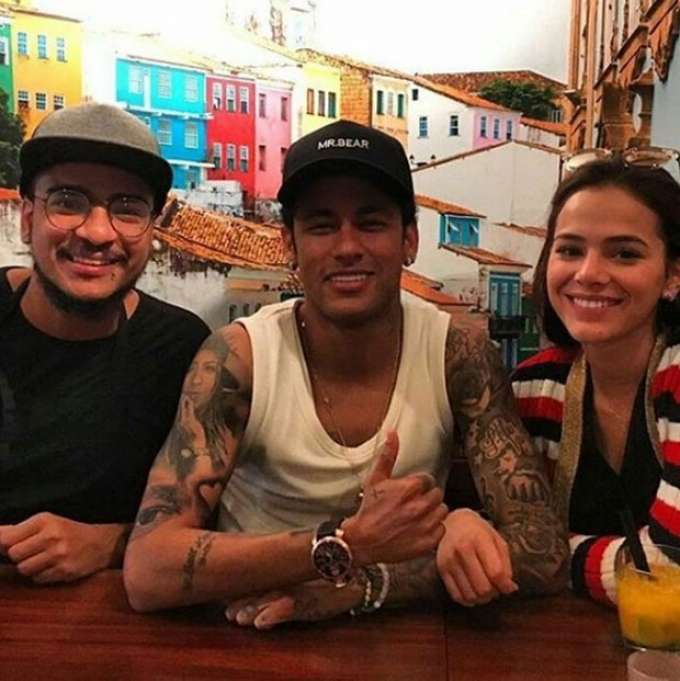 Neymar levou Bruna para almoçar no restaurante de João Alcantara, namorado de Carol Dantas - mãe do filho de Neymar.
