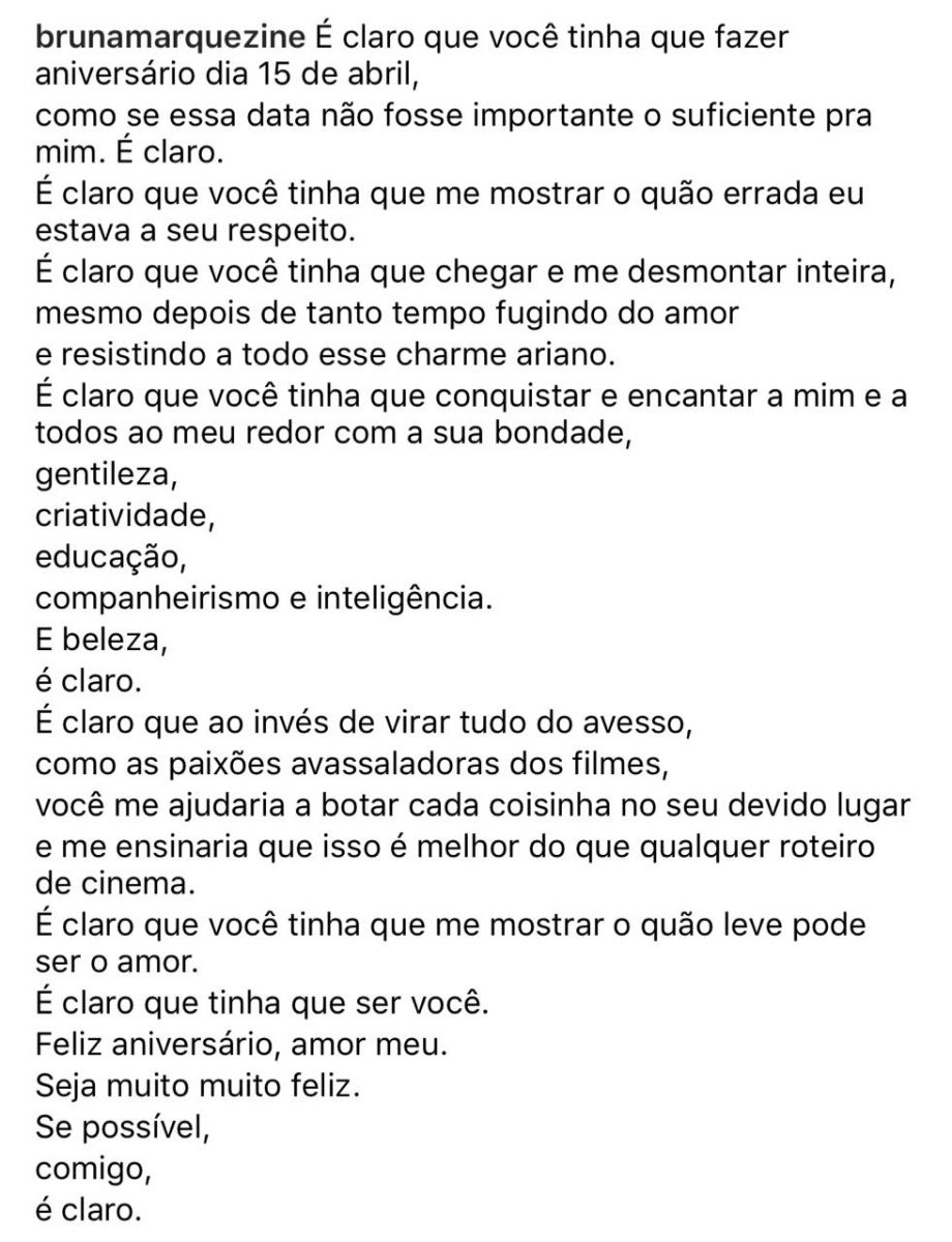 De tirar o fôlego, né? E na mesma data do aniversário do amado, Bruna também comemora o aniversário do pai - que também ganhou uma declaração da filhota. Veja mais fotos publicadas pela atriz: