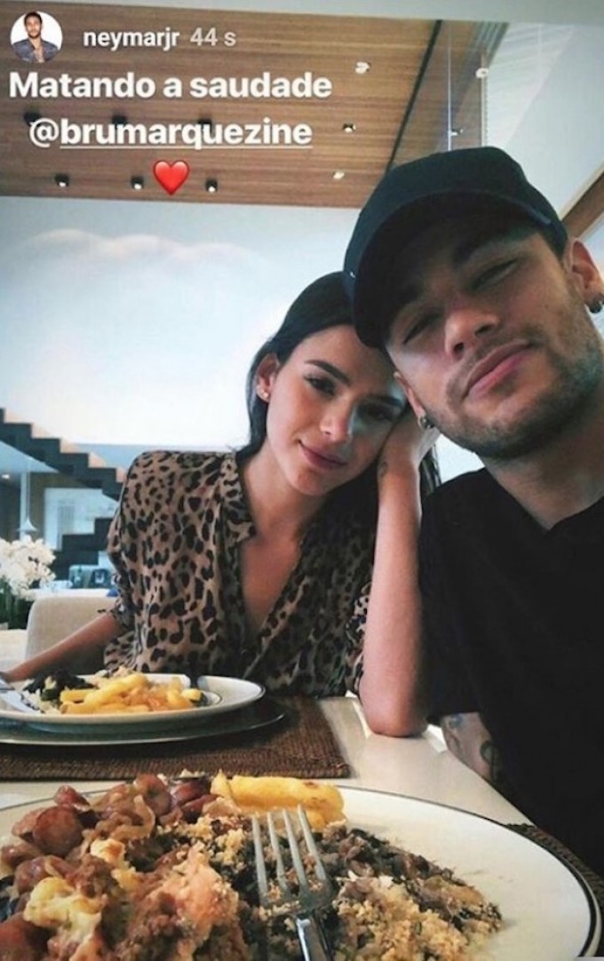 Logo em seguida, o jogador publicou uma selfie com a amada enquanto os dois almoçavam, confirmando que o destino de Marquezine era para a sua mansão em Mangaratiba, cidade vizinha a Angra dos Reis, localizada a cerca de 130 quilômetros do Rio.