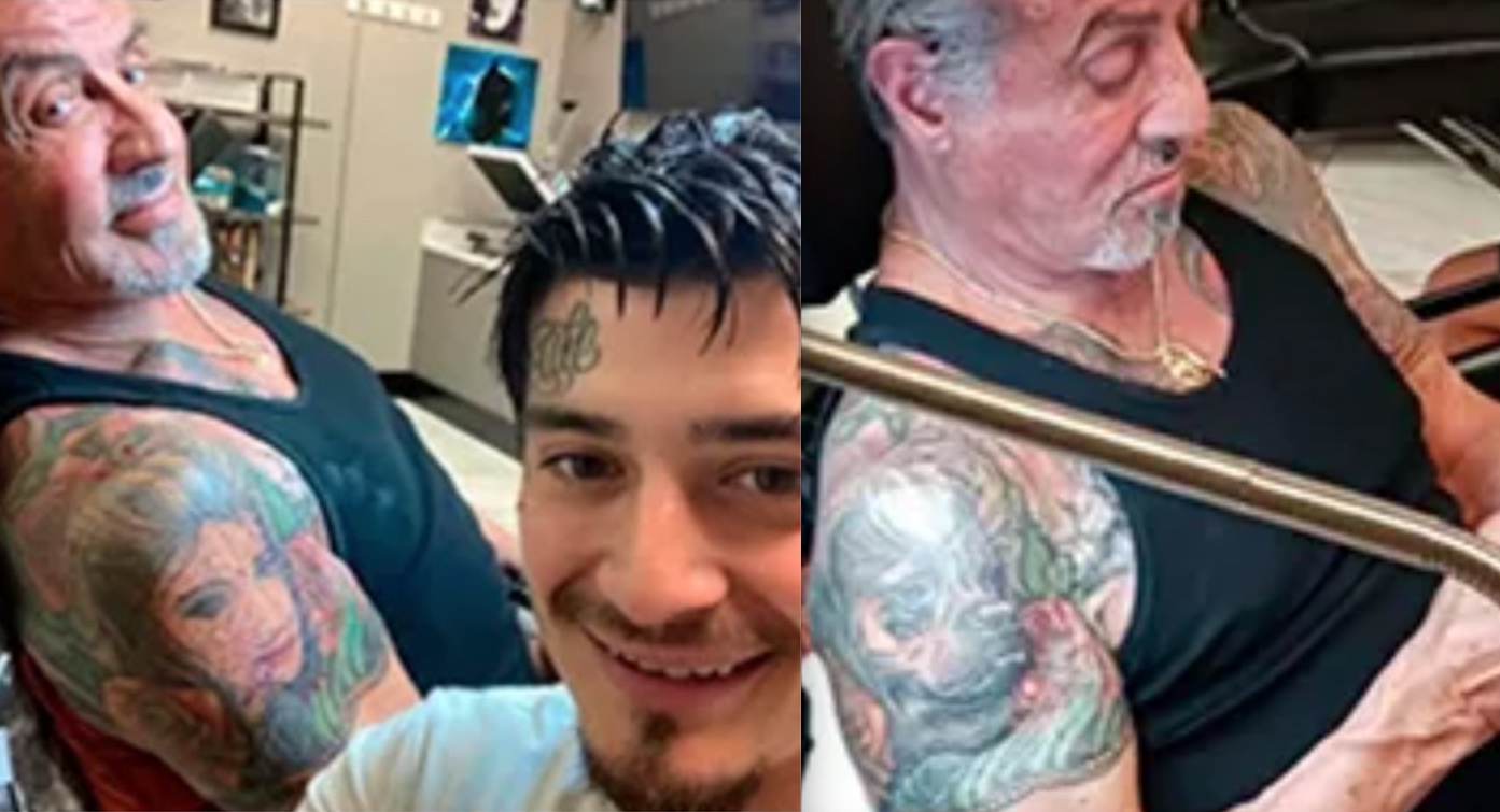 Tattoo do rosto coberta por tattoo de cachorro - Segundo o portal Daily Mail, o pedido de divórcio aconteceu na sexta-feira, dia 19, e na segunda-feira, dia 22, o ator já estava cobrindo a tatuagem que tem com o rosto de Jennifer e a substituindo a imagem pela do cachorro falecido Butkus, o famoso cachorro de Rocky Balboa e seu companheiro na vida real. Representantes do artista afirmaram que ele não tinha a intenção de cobrir o rosto da mulher e sim melhorar o desenho, mas as coisas deram errado e ele acabou precisando cobrir a tattoo.