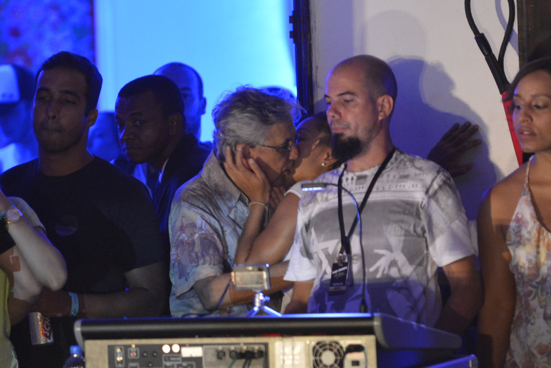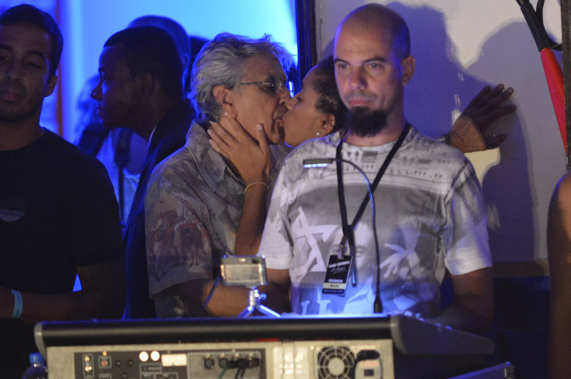 Caetano estava curtindo o festival "Verão Luiz Caldas" tranquilamente quando a morena que conversava com ele o agarrou. Aos 70 anos, o cantor beijou muito ao som de Gilberto Gil e Moraes Moreira, que se apresentaram no Clube dos Fantoches da Euterpe, que aconteceu na em Salvador - BA.