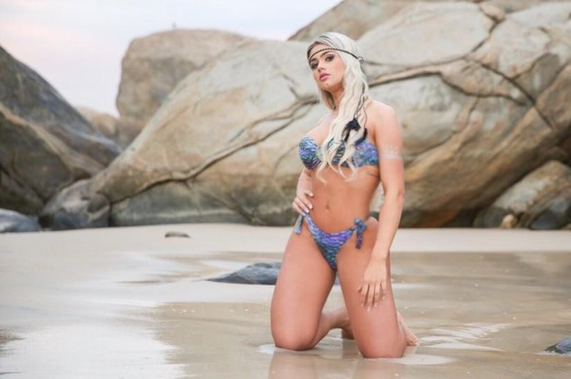 Janaína Santucci posou para um ensaio sensual na praia e exibiu o corpão em forma de biquíni.