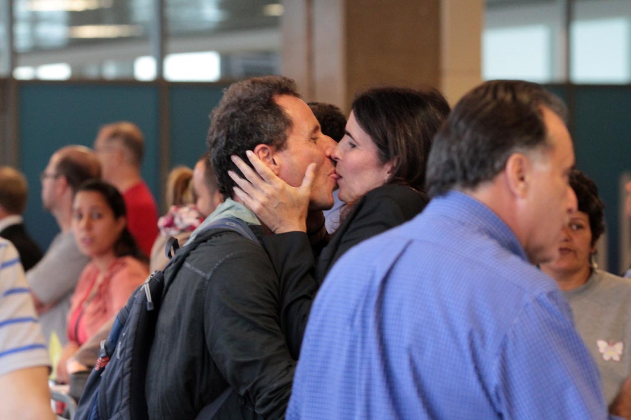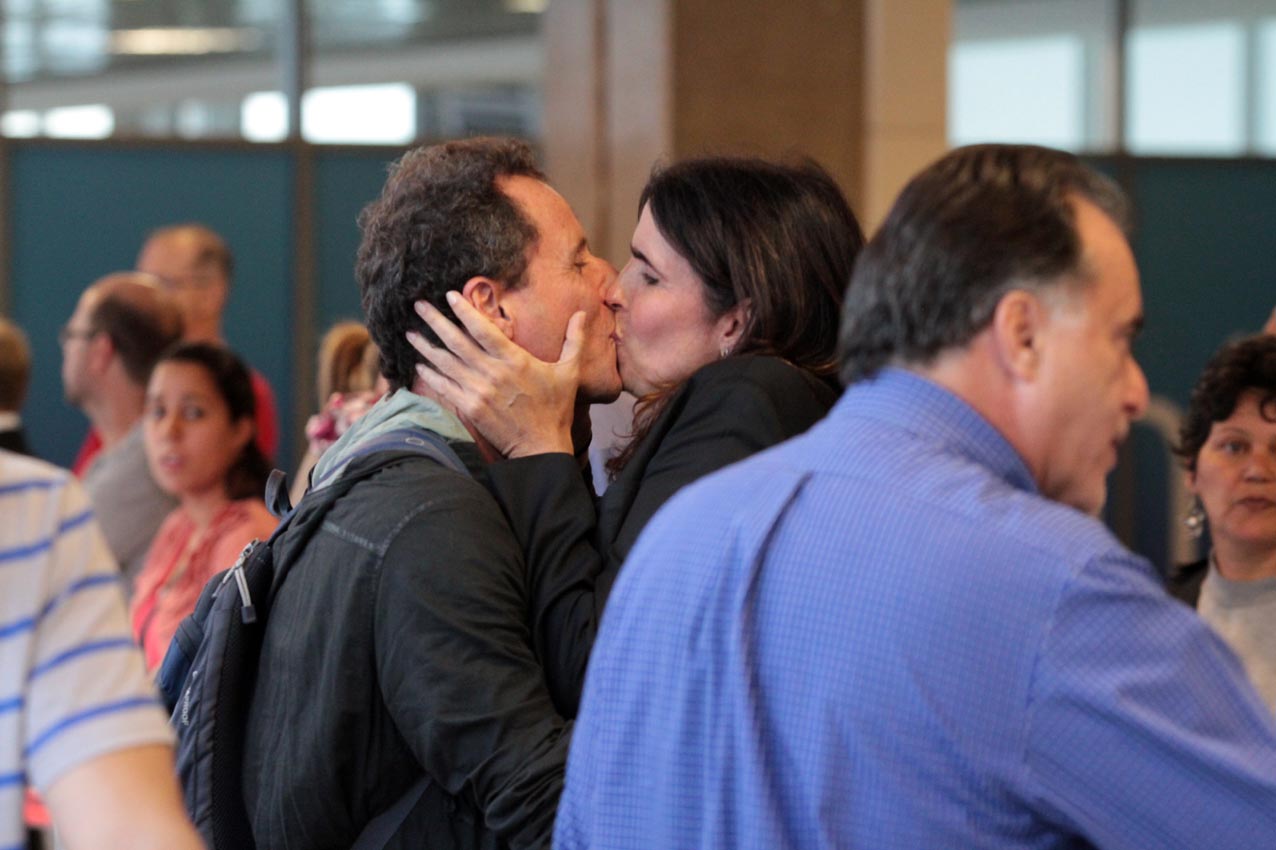 Se fossem dois anônimos, ninguém imaginava que são casados há 23 anos. Um dos casais de famosos mais duradouros, Tony Bellotto e Malu Mader aproveitaram o reencontro no aeroporto nesta quarta-feira (27) para trocarem carinhos apaixonados.