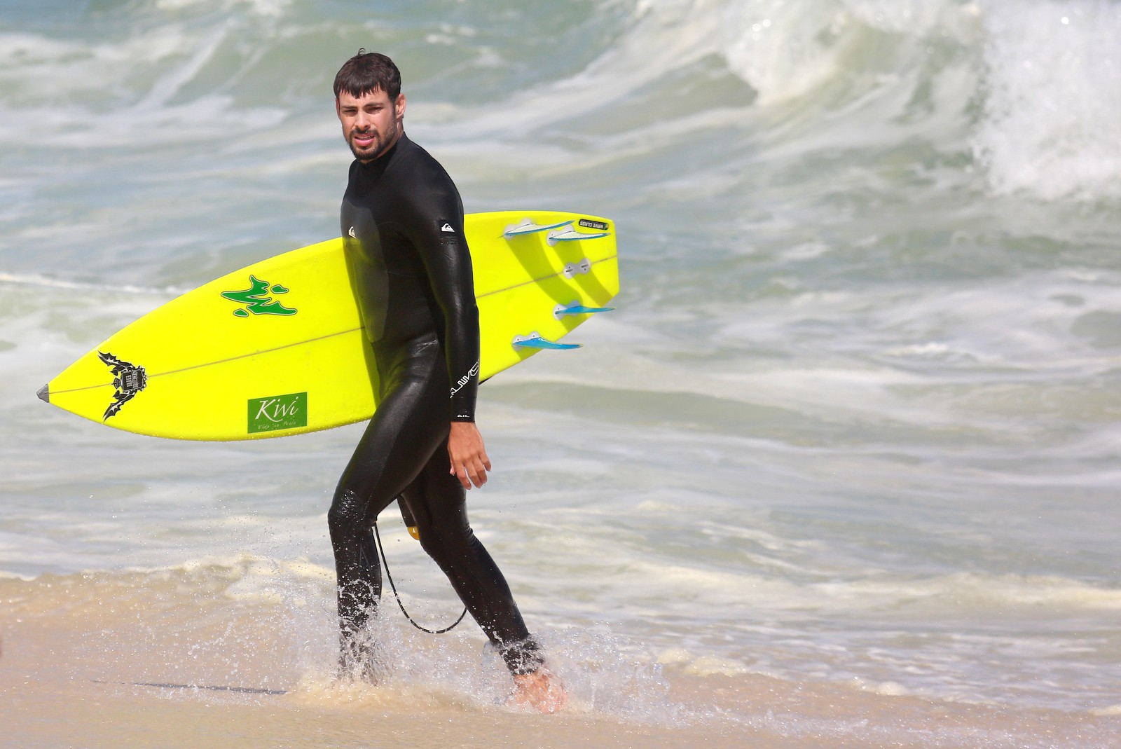 Cauã Reymond aproveitou o domingão ensolarado para surfar. Solteirão, o galã chegou com roupa de borracha na praia da Barra da Tijuca, no Rio de Janeiro neste dia 17, pegou várias ondas, tomou "caixote" e parou para posar em fotos com fãs. Confira os clicks e veja se ele manda bem no esporte.