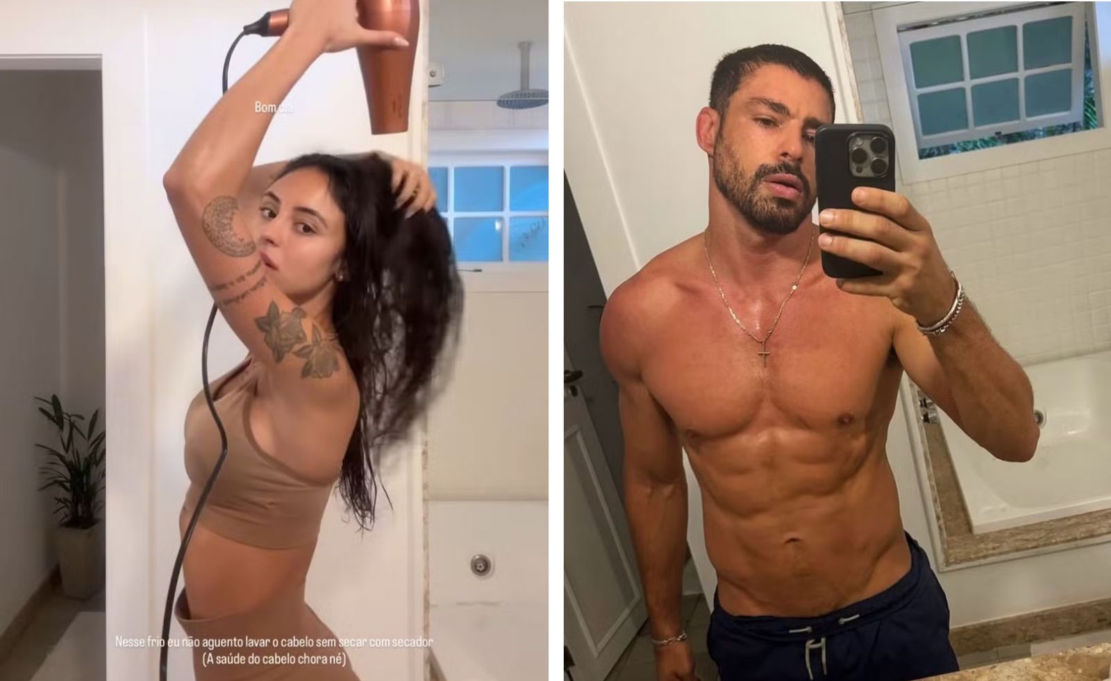 Agora, a modelo mostrou que o romance segue de vento em popa após postar registros na casa de Cauã, no Rio. No fim de semana ela postou imagens secando o cabelo onde seria o banheiro do ator, e também compartilhou fotos em um dos quartos. As imagens mostram a semelhança dos registros.
