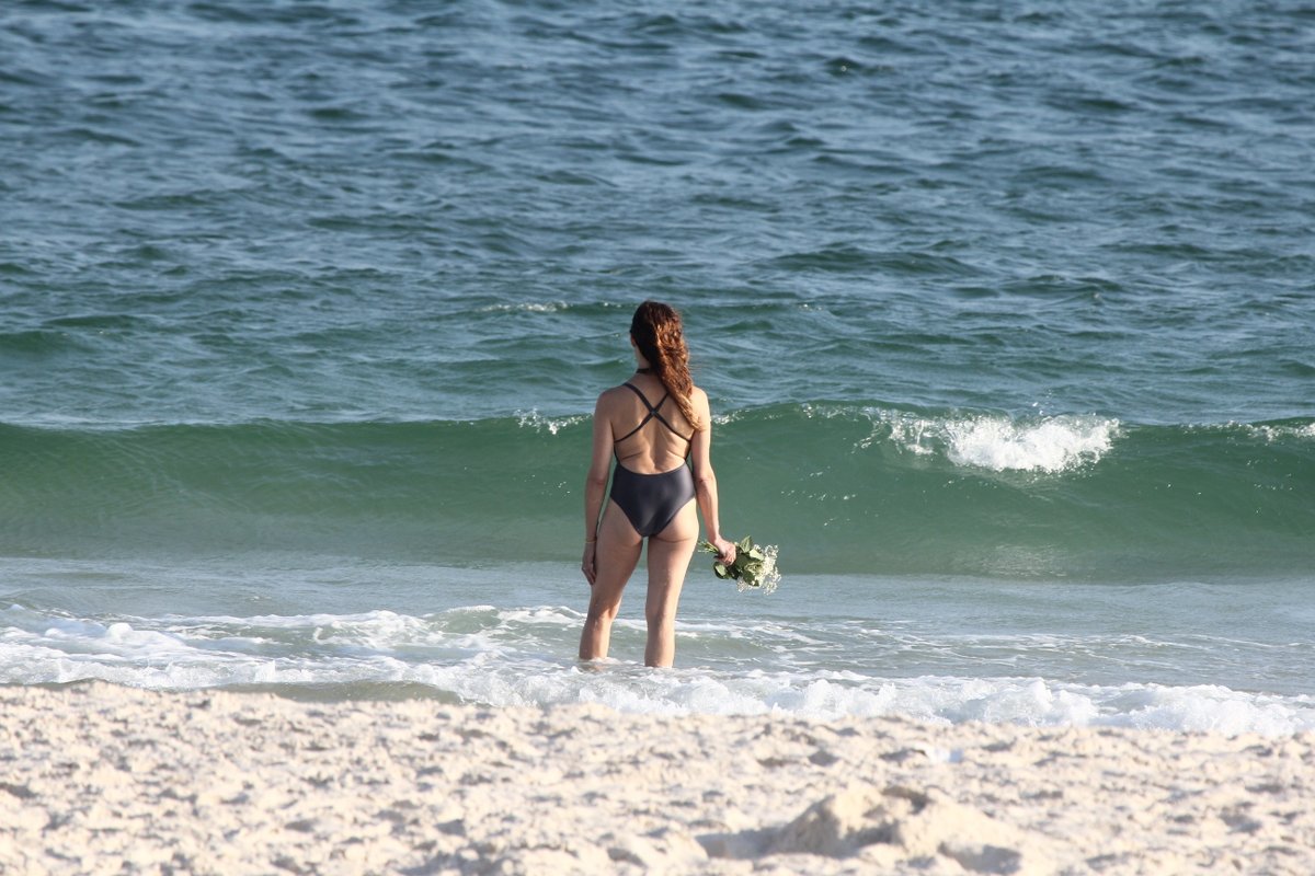 Christiane Torloni aproveitou o dia do seu aniversário nesta segunda-feira (18), para um momento espiritual. A atriz, que comemora 56 anos foi sozinha à praia da Barra da Tijuca, no Rio de Janeiro, e agradeceu pelos anos de vida, jogando flores no mar.