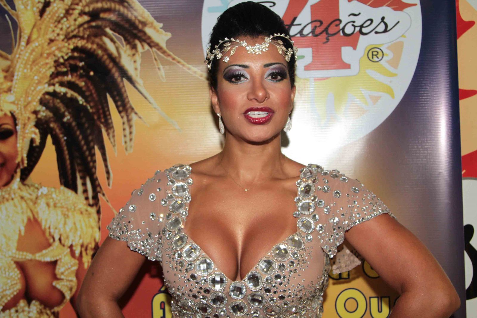 Madrinha de Bateria da Escola Águia de Ouro, Cínthia Santos sambou muito ao lado de Milene Nogueira no ensaio técnico para o Carnaval Paulista de 2013, na noite desta quinta-feira (16) no sambódromo do Anhembi, em São Paulo