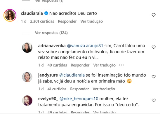 O casal, que anunciou a novidade no domingo (30), recebeu várias mensagens carinhosas de amigos famosos, mas o que chamou atenção foi o comentário da atriz: "Não acredito! Deu certo", escreveu ela.