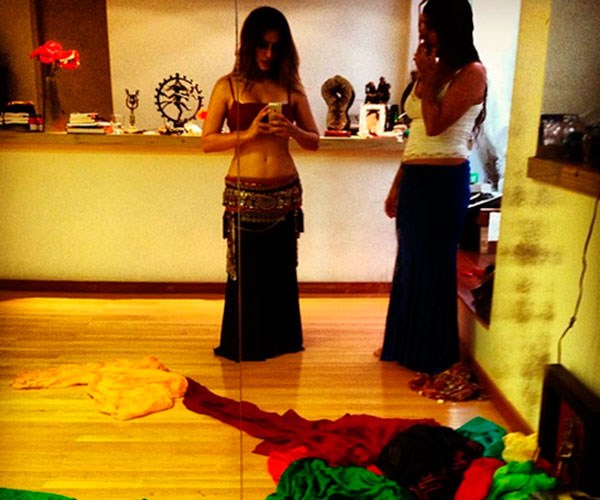 Cleo Pires publicou uma foto na sua conta no Instagram em que aparece de barriga de fora, aprendendo a dança dos 7 véus, que irá realizar em "Salve Jorge", com sua personagem Bianca.