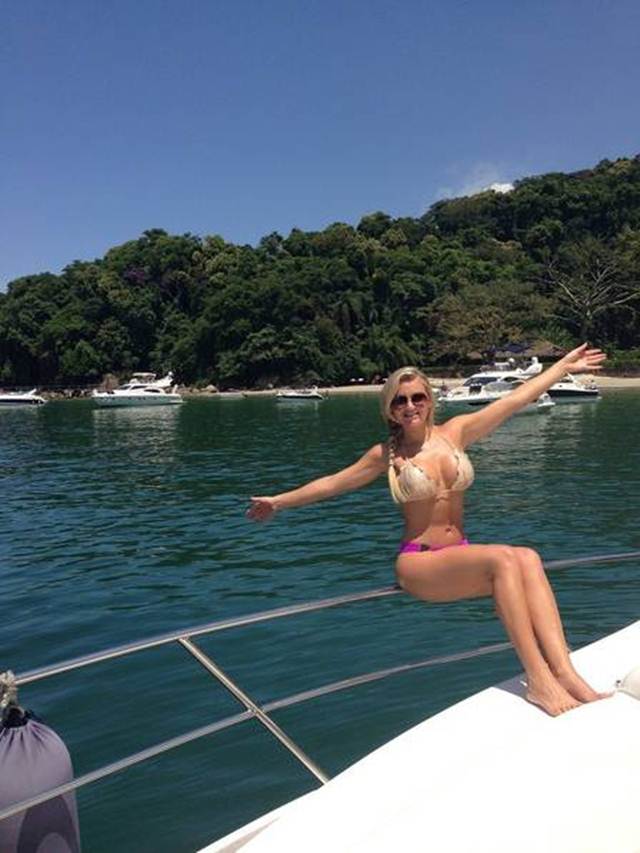 Thaiz Schmitt mostrou porque é coelhinha da Playboy ao posar só de biquíni durante um passeio de iate no Rio de Janeiro, em Angra dos Reis.