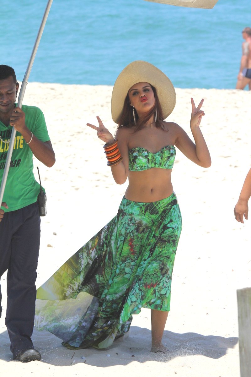 Paloma Bernardi foi clicada durante as gravações de 'Salve Jorge' nesta sexta-feira (22). A atriz que interpreta Rosângela, uma das traficadas da trama que se passa por modelo para camuflar o crime, fez pose na beira do mar, usando biquíni e saída de banho.