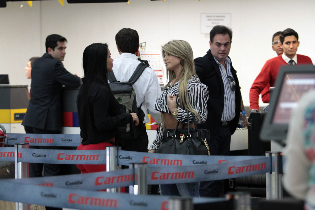 O clima ficou tenso na noite desta quarta-feira, 7, no aeroporto de São Paulo. A ganhadora do concurso Miss Bumbum Estados Unidos, Milene Santos, discutiu com a Miss Bumbum Brasil 2012, Carine Felizardo, na fila de check-in.