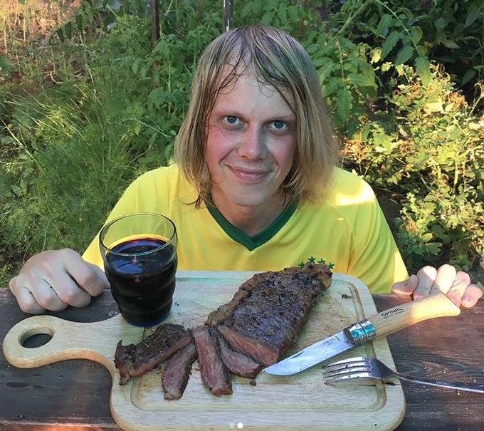 O rapaz posou nas redes sociais fazendo um churrascão com direito a camisa da seleção brasileira.