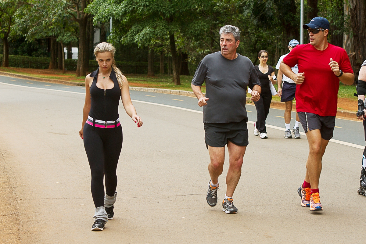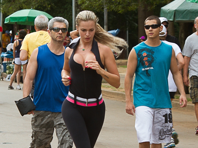 Veridiana Freitas, ex- affair com Gustavo Lima que ficou famosa por seus ensaios sensuais após ficar com o cantor sertanejo, foi clicada se exercitando no Parque do Ibirapuera, em São Paulo, e chamou a atenção dos frequentadores do local por conta do seu decote estratégico e roupa coladinha.