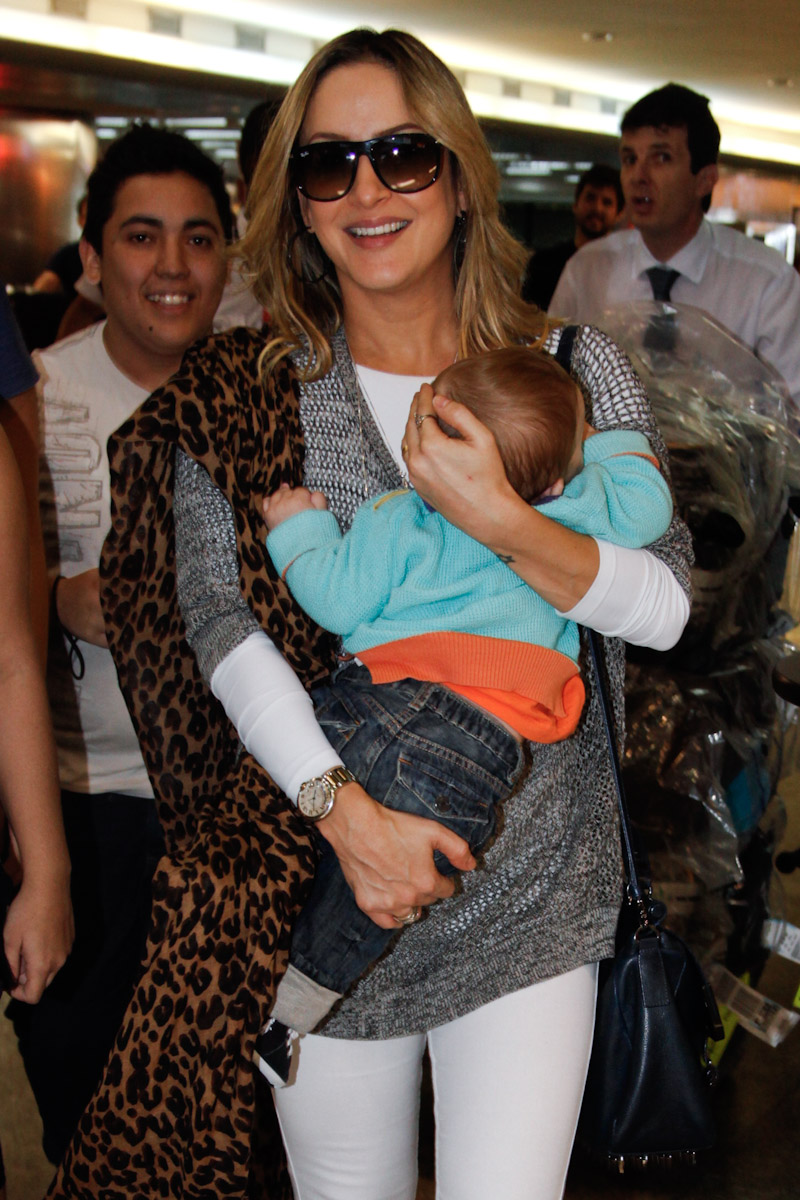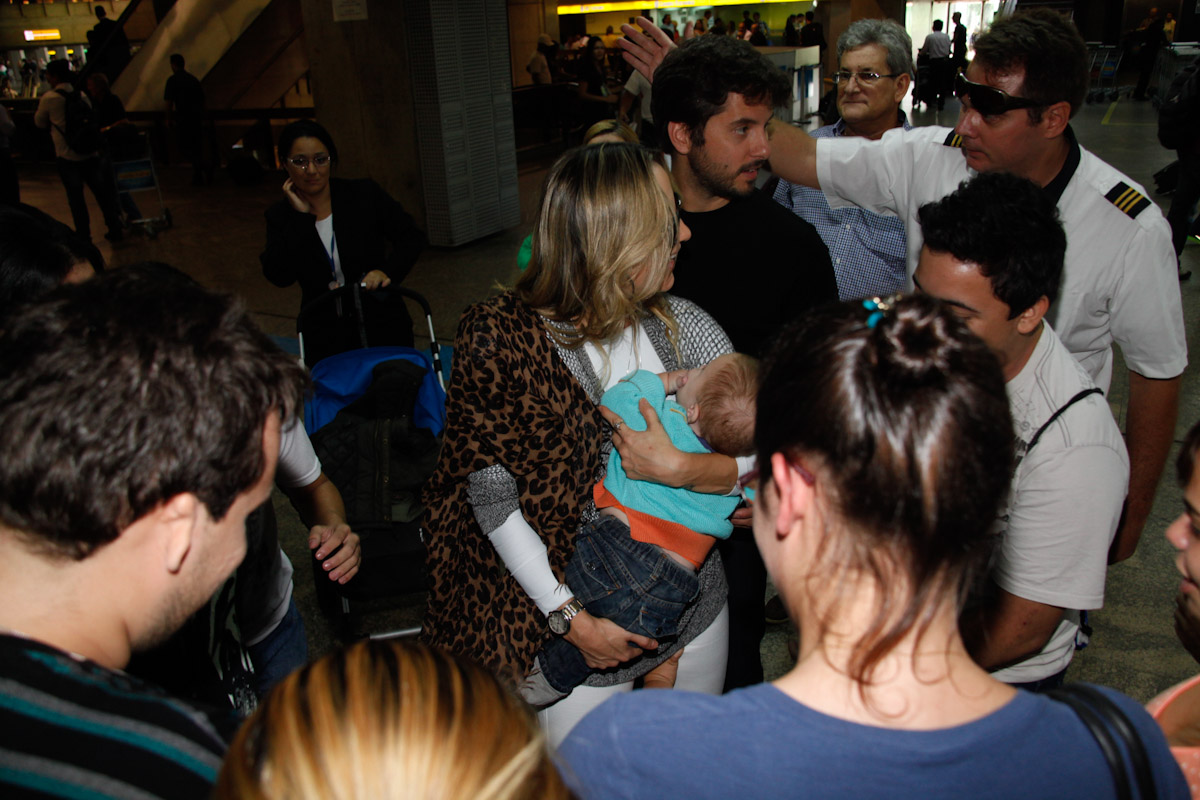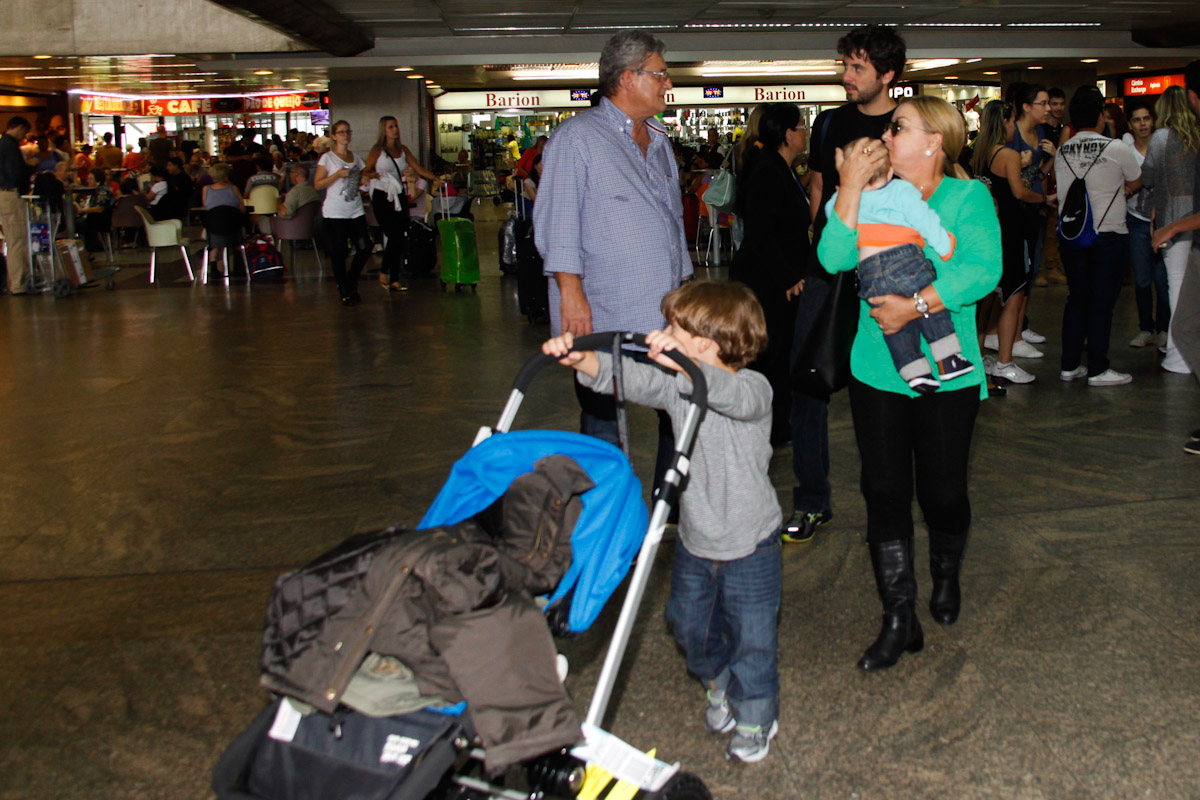 A loira estava acompanhada de seu marido, o empresário Márcio Pedreira e de seus 2 filhos, Davi (de 4 anos) e Rafael (de 6 meses – que teve o seu rostinho revelado mesmo na tentativa da mãe de escoldê-lo com a mão), além de seus pais, Dona Ilna e Sr. Cláudio.