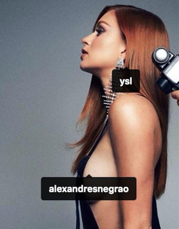 O que chamou atenção foi que a ruiva marcou o marido, Xande Negrão, bem na altura do seio, na imagem.