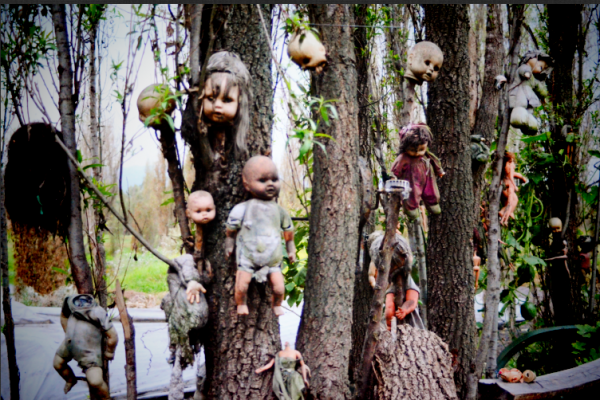 Uma jovem morreu afogada perto de uma ilha em canais ao sul da Cidade do México há 50 anos atrás. Desde então, um artista foi enchendo as casas em ruínas e o terreno envolta com bonecas e partes de bonecas. O resultado é a Isla de la Munecas (Ilha das Bonecas). A ideia arrepiante surgiu de Julian Santana Barrera depois que ele encontrou a cabeça de uma boneca flutuando na água perto de onde a menina havia se afogado.