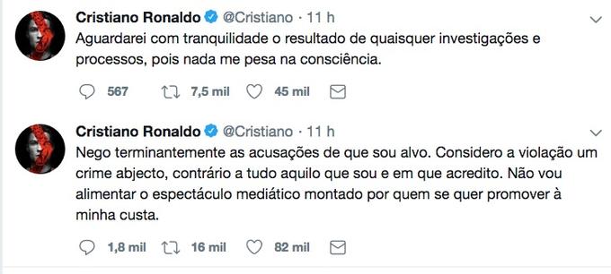 No Twitter, Cristiano Ronaldo voltou a negar as acusações: