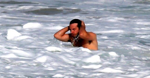Bradley Cooper, que veio ao Brasil para divulgar o filme "Se Beber, Não Case! Parte III" ao lado dos seus colegas de elenco, aproveitou sua estadia no Rio de Janeiro para passear pela Pedra do Arpoador, caminhar pelas areias e dar um mergulho no mar de Ipanema, na Zona Sul do Rio de Janeiro.