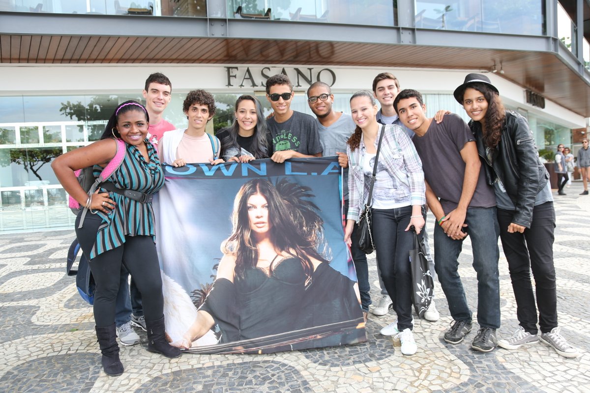 Fergie aproveitou a tarde desta quinta-feira (4) para agradecer a presença incansável dos seus fãs, que ficam na porta do hotel onde está hospedada no Rio de Janeiro.