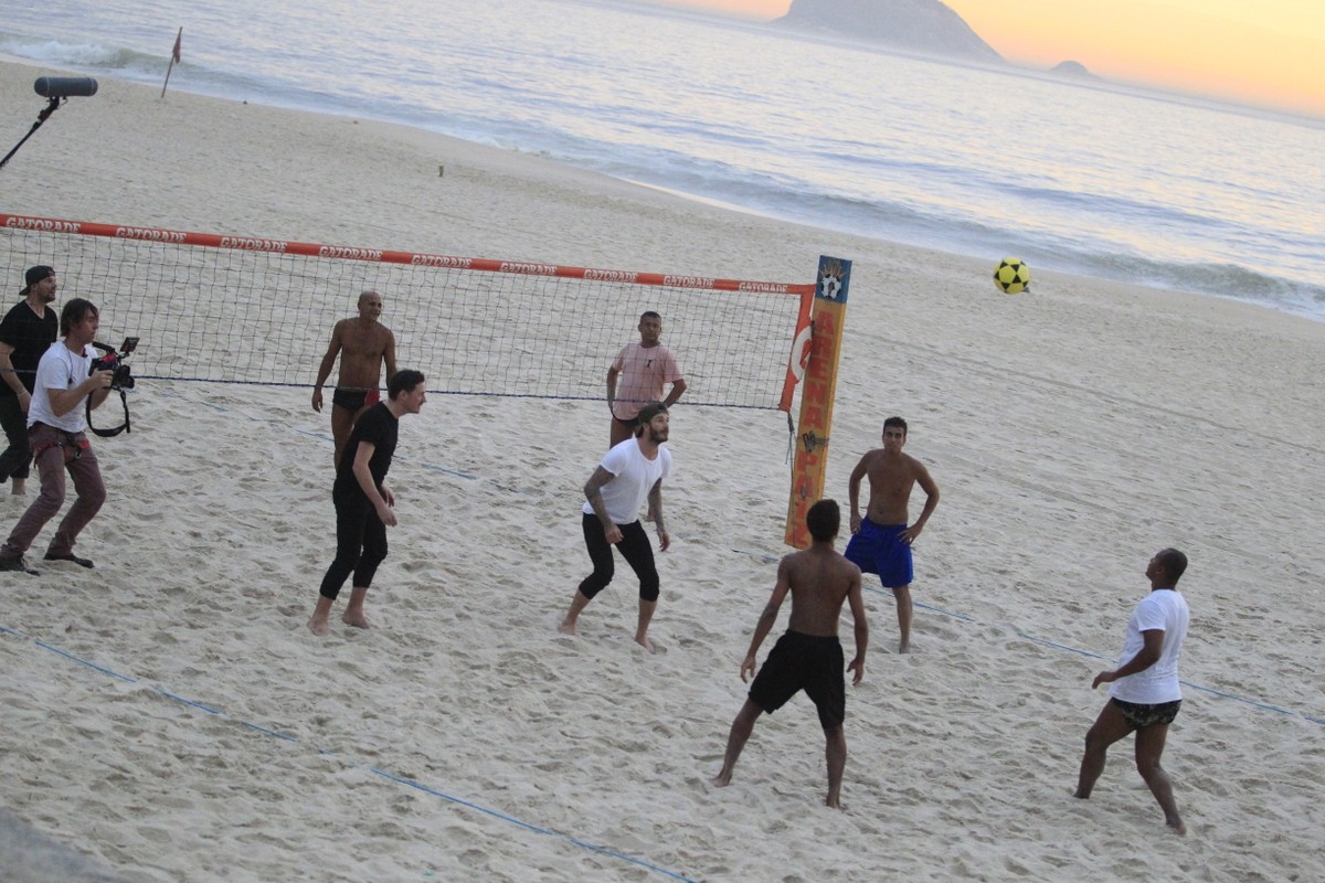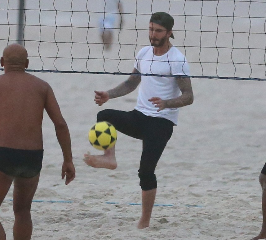 David gravou um comercial enquanto jogava futvôlei na praia com brasileiros.