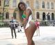 As beldades desfilaram pelas ruas da cidade usando apenas biquíni com as cores da bandeira do Brasil.
