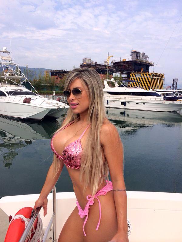 A beldade, que é uma das musas que embelezam o programa "Legendários" (Record), mostrou a sua comissão de frente generosa em vários modelos de roupa de banho. Confira.