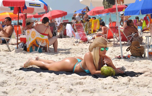 A ex-Panicat Aryane Steinkopf foi clicada relaxando e mostrando o que é belo durante este sábado (16), na praia do Rio de Janeiro. A loira deixou suas curvas generosas à mostra.