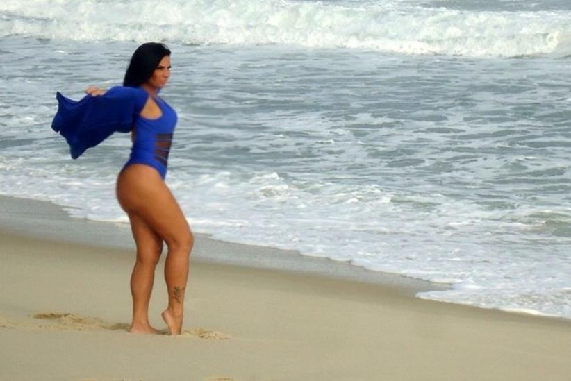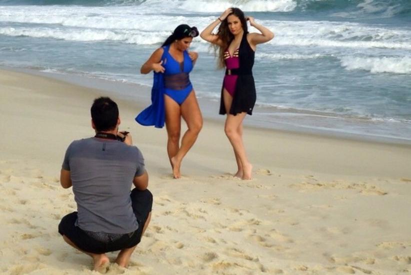 Solange Gomes e a filha, Stephanie de 15 anos, fizeram um ensaio moda praia na manhã desta quarta-feira (28). De maiô, as duas chamaram atenção pela boa forma.