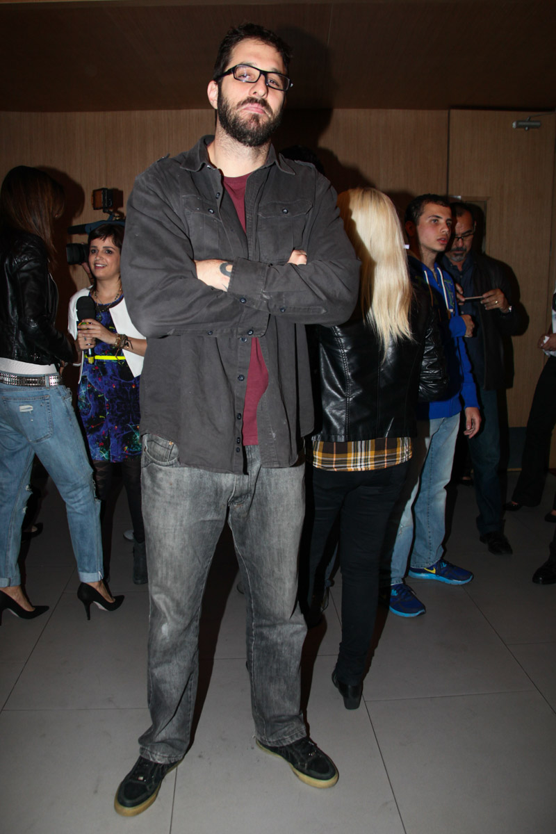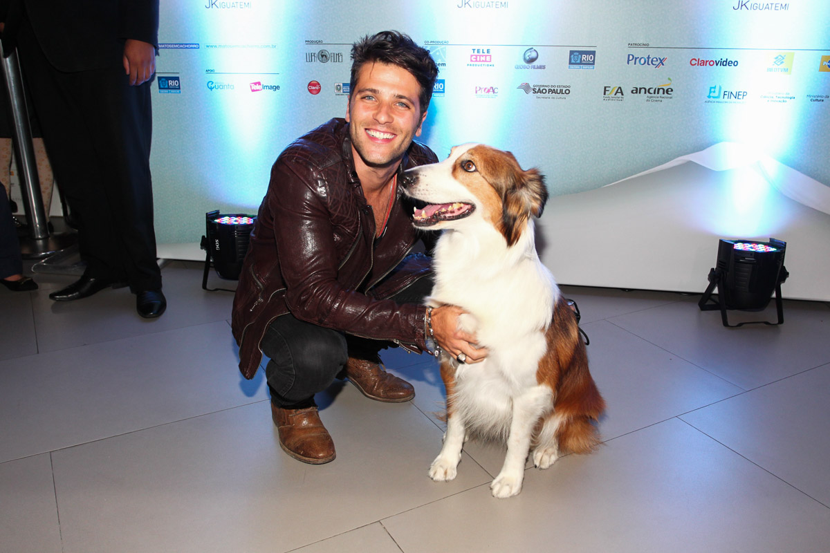 O humorista apareceu usando um roupão vermelho de seda, acompanhado de nada menos que duas 'coelhinhas da Playboy'. Para completar o 'time', o cão que também participou do filme estava presente. Bruno Gagliasso e Leandra Leal também atuaram no filme.