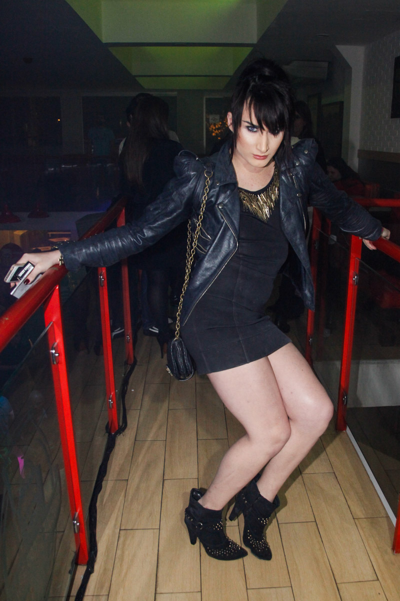 O rapaz usava um vestido curtinho, que ainda levantou para deixar as coxas à mostra, e um salto alto, além de muita maquiagem.