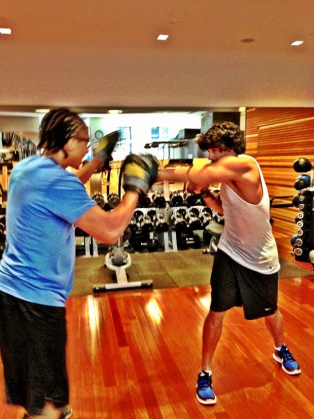 Para manter os músculos, ele luta boxe e há cinco anos conta com o personal trainer de famosos Josh Holland, também personal da sua ex-namorada popstar.