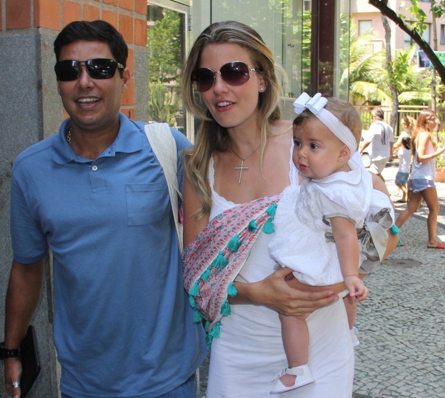 Debby Lagranha reservou o domingo, 12, para batizar a sua filha, Maria Eduarda, em uma pequena Igreja na Barra da Tijuca, no Rio de Janeiro. A ex-atriz mirim da Turma do Didi foi com o marido Leandro e os pais à cerimônia. Antes do batizado ela posou com os pais, os sogros e os padrinhos de sua filha.