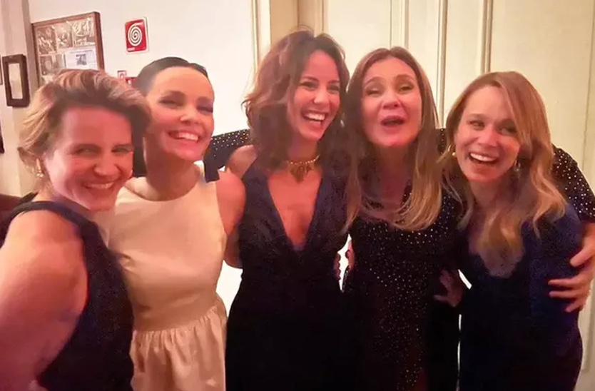 A atriz Andréia Horta, que é grande amiga de Débora, postou fotos da cerimônia, em que aparece com mais outras amigas famosas, como Adriana Esteves, Mariana Ximenes e Bianca Comparato.