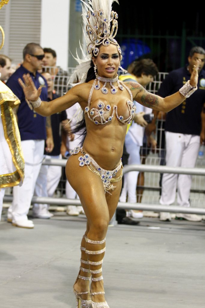 Adepta da musculação pesada no melhor estilo 'Gracyanne Barbosa', a morenaça desfilou pela Imperador do Ipiranga e foi escoltada de pertinho pelo marido, Alexandre Frota. Com uma fantasia ousada, ela até mostrou demais e deixou parte dos seios aparecendo na folia.