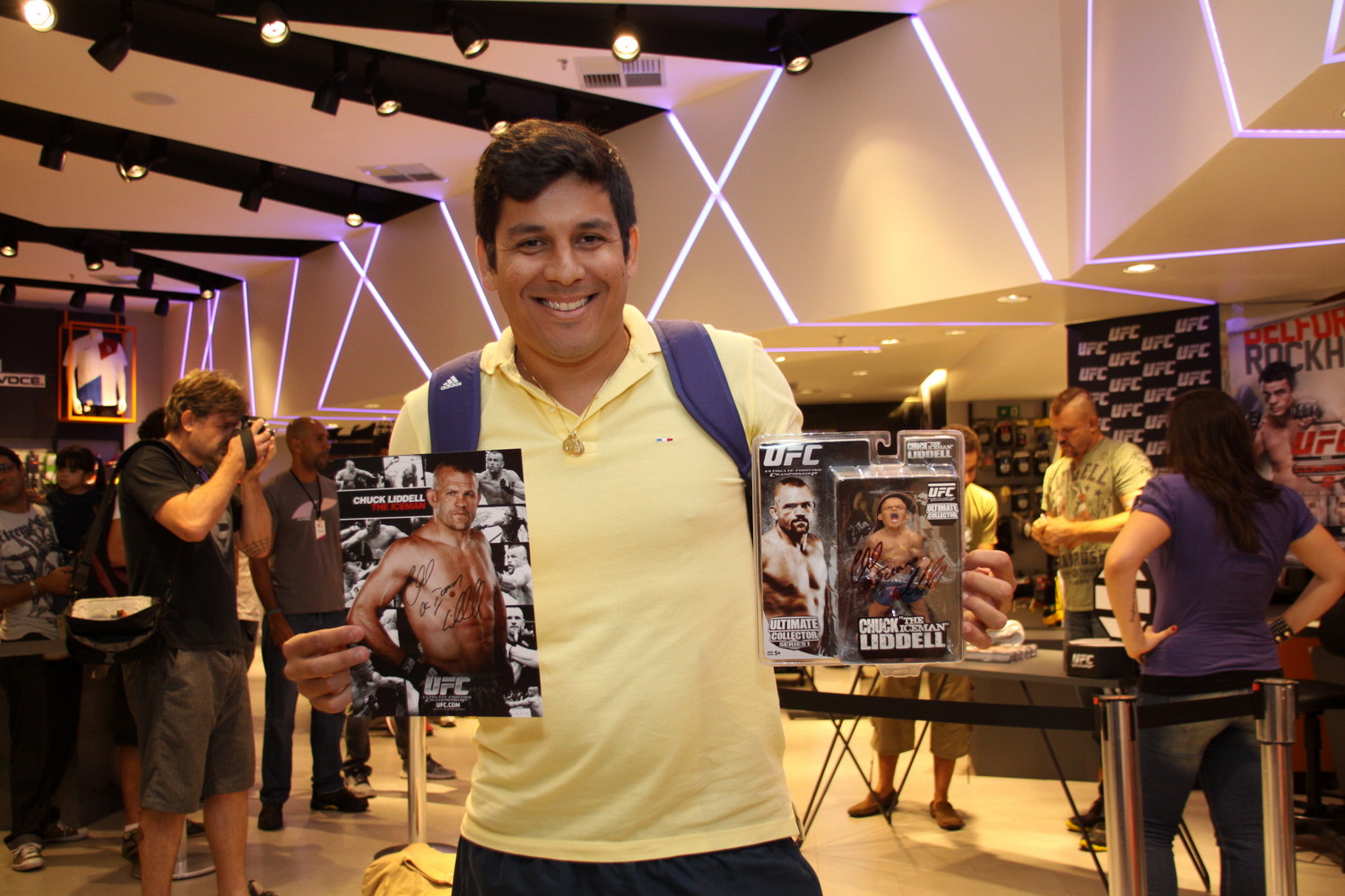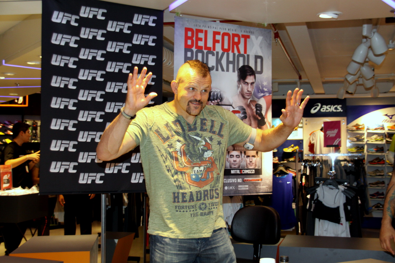 Cumprindo agenda do Ultimate e divulgando a luta de sábado, no dia 18 de maio, do UFC no Combate 2 - Belfort x Rockhold, que acontece em Jaraguá do Sul, a lenda americana do MMA, o lutador Chuck Lidell participou de um encontro com fãs que contou com autógrafos e fotos em um shopping na Barra da Tijuca, na Zona Oeste do Rio, nesta segunda, neste dia 13.