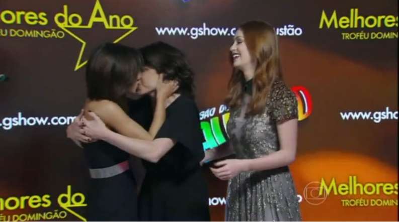 Na hora do anúncio da vencedora, Drica comemorou e tascou um beijo em Andreia Horta e abraçou Marina.