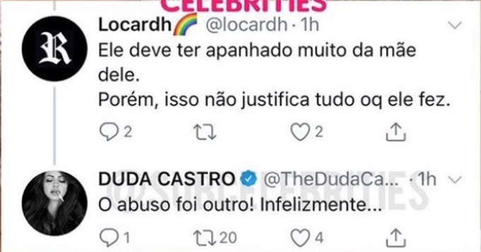 Um internauta comentou na publicação da influencer que o jovem teria apanhado muito da mãe. Porém Duda Castro respondeu dizendo que Biel teria sofrido 'outro tipo de abuso'.