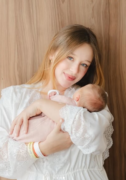 A atriz e influenciadora de 23 anos deu à luz na última sexta-feira (3), e nesta segunda (6), publicou fotos da bebê em seu colo, de costas, e comentou sobre o tom dos cabelos da menina.