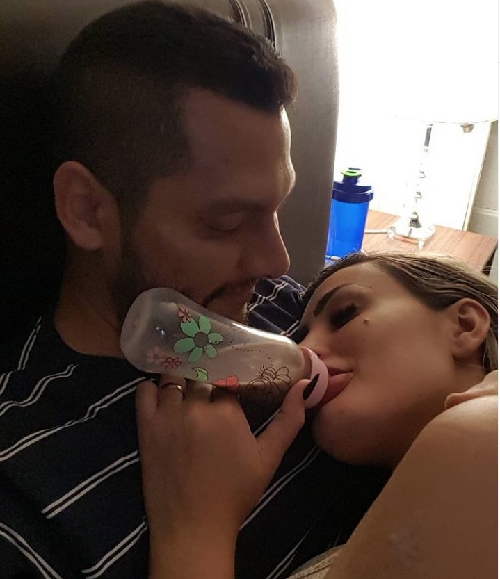 “Agora, quando me casei novamente, com o Thiago Lopes, ele sabendo que gosto muito de mamar leite quente com achocolatado antes de dormir, como uma forma de carinho, de denguinho e de amor, ele faz o meu mamá. Ele esquenta o leite antes de dormir e eu deito no colo dele como um neném mesmo e tomo um mamazinho”, disse.