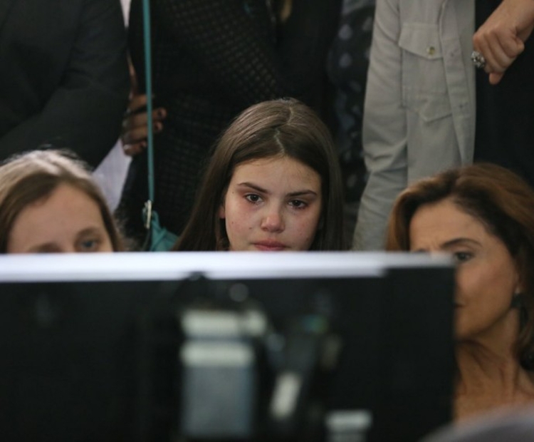 Camila Queiroz e Marieta Severo aparecem gravando o enterro de Carolina (Drica Moraes).