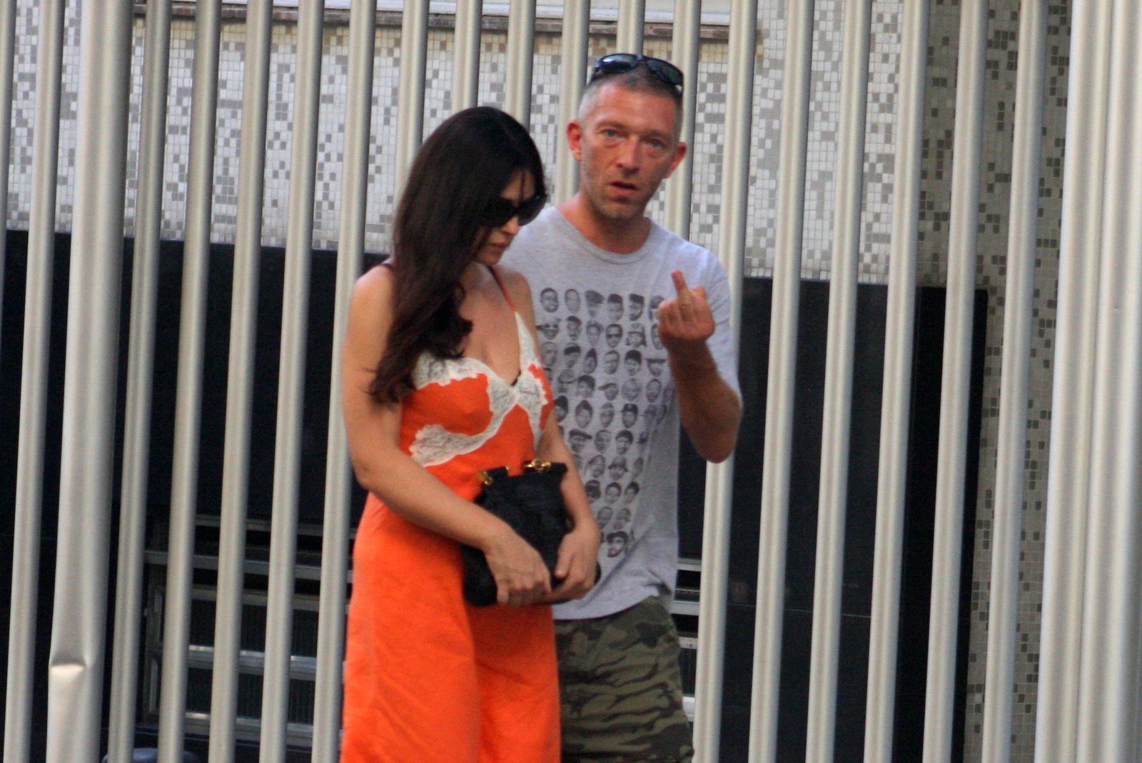 Vincent falava e gesticulava muito. Já Monica , discreta, ficou apenas ouvindo. Quando avistou os paparazzi, Vincent fez questão de descontar a raiva e dar um "cotoco", enquanto Monica fazia 'cara de paisagem'.